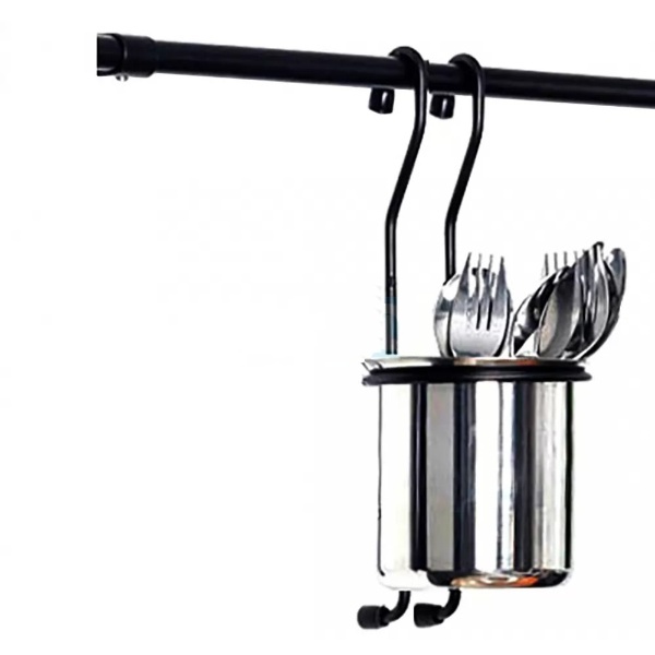 Черна,висяща поставка с дълбоко легенче за закачване на кухненска тръба.Подходящи за сухи и мокри домакински прибори и ножове