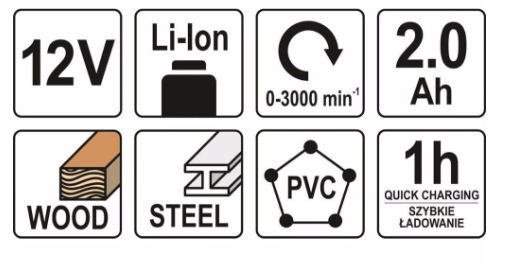 • Батерия: 1 х 12V Li-Ion, 2 Ah
