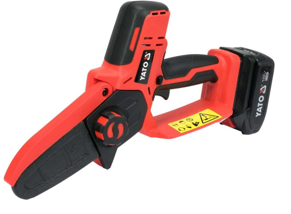 Акумулаторен mini верижен трион, предназначен за бързо подрязване на клони на дървета, храсти, дървени трупи, рязане на елементи от градинската архитектура.