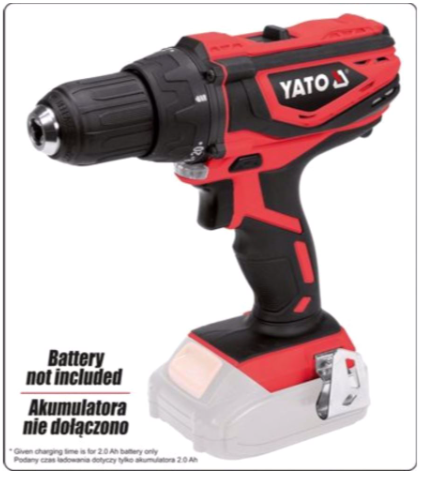 • Съвместим с всички батерии Yato 18 V (2 Ah, 3 Ah, 4 Ah)