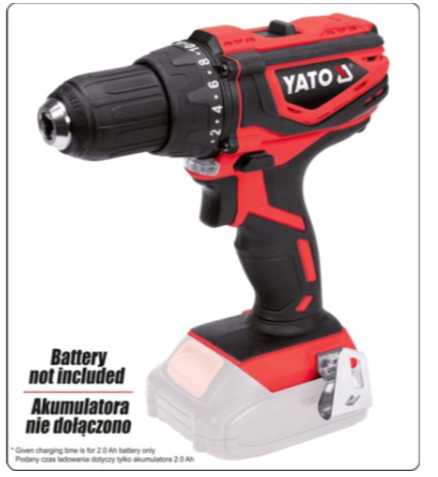 • Съвместим с всички батерии Yato 18 V (2 Ah, 3 Ah, 4 Ah)
