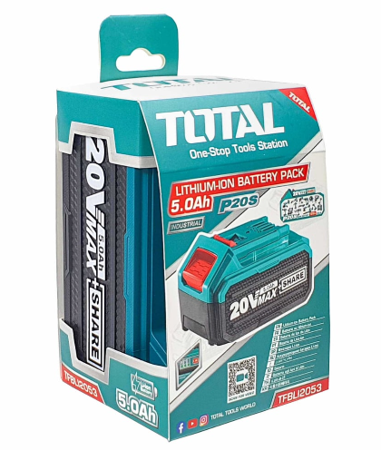 Литиево - йонна акумулаторна батерия, подходяща за всички инструменти TOTAL, работещи на 20 V.