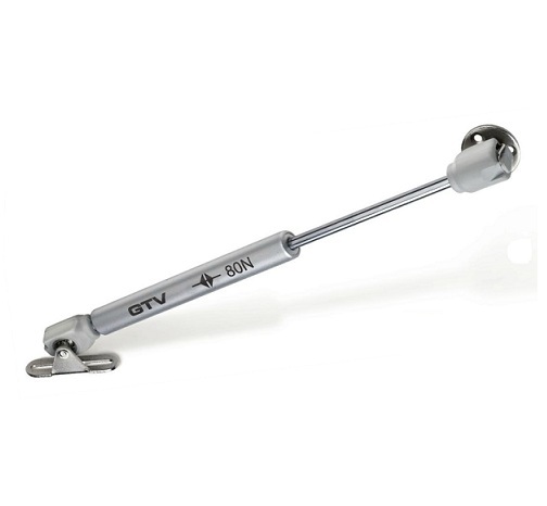 Газов амортисьор за мебелни вратички. Използва се за врати, които се отварят нагоре. В зависимост от големината и тежестта на вратата може да се монтира само един амортисьор или два с еднаква сила в двата края на вратичката.Съотношението НЮТОН = КИЛОГРАМ е приблизително 1 = 10