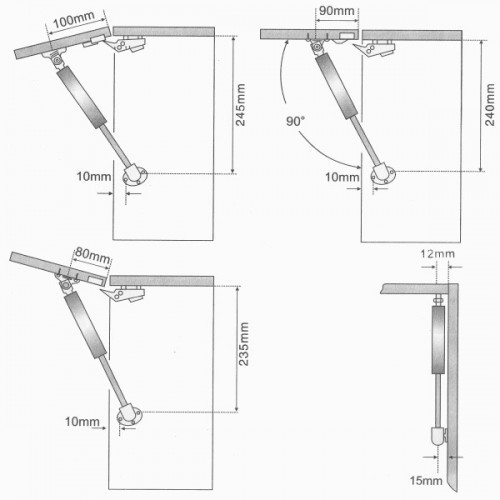 Амортисьор се предлага и в други нютони, които спомагат за балансирано повдигане на по-тежка или по-лека мебелна вратаичка.