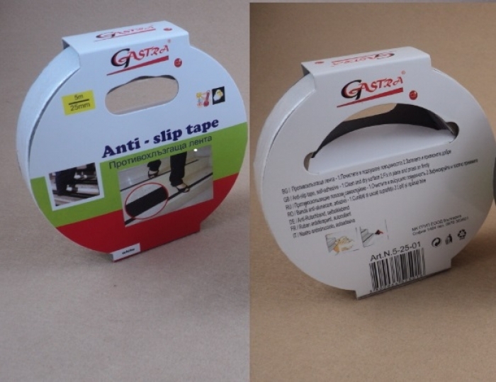 Противоплъзгащата самозалепваща лента е предназначена за предпазване от падания и подхлъзвания по мокри или заснежени подови покрития на стълбища или подове с разнотипни покрития, като теракот, гранит, паркет и други, както изложени на външни условия, така и на закрито. Лентата е издръжлива на изхабяване и не се разлепва, ако се спазят всички инструкции за употреба,а именно преди, залепване, мястото да бъде много добре почистено и подсушено. След това лентата да се залепи внимателно със последователно силно притискане. След 12 часа лентата е готова и залепнала перфектно и може да бъде изложена на външни условия.