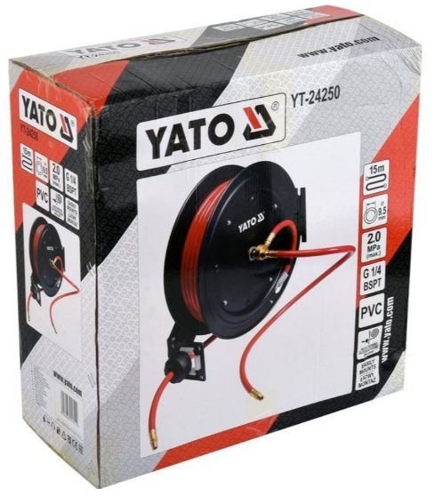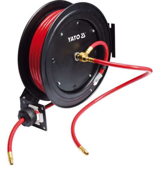 Пневматичен маркуч на автоматична макара. Необходим за захранване на пневматични инструменти. Възможност за монтаж на стената или на пода.