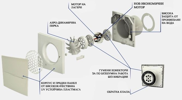 Иновативен вентилатор, със стилен дизайн осигуряващ по високо ниво на комфорт във баня, кухня и други сервзни помещения