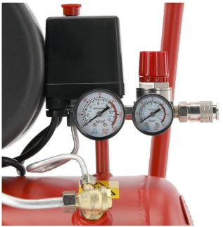 Маслен компресор с две връзки и регулиране на налягането. Използва се за задвижване на устройства със сгъстен въздух, продухване на отвори и почистване на повърхности. Безценен помощник в промишлеността, строителството, цеховете и селското стопанство.