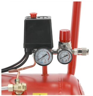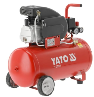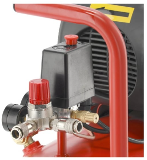 Маслен компресор с две връзки и регулиране на налягането. Използва се за задвижване на устройства със сгъстен въздух, продухване на отвори и почистване на повърхности. Безценен помощник в промишлеността, строителството, цеховете и селското стопанство.