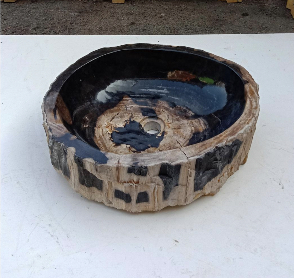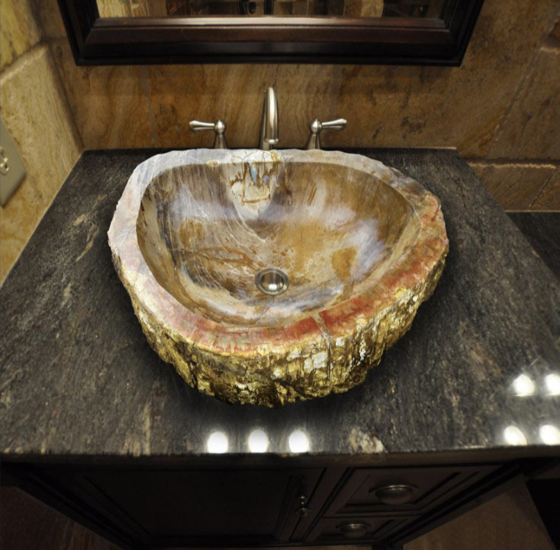 Дизайнерска Мивка за Баня от Вкаменено Дърво ръчна изработка в неправилна форма
