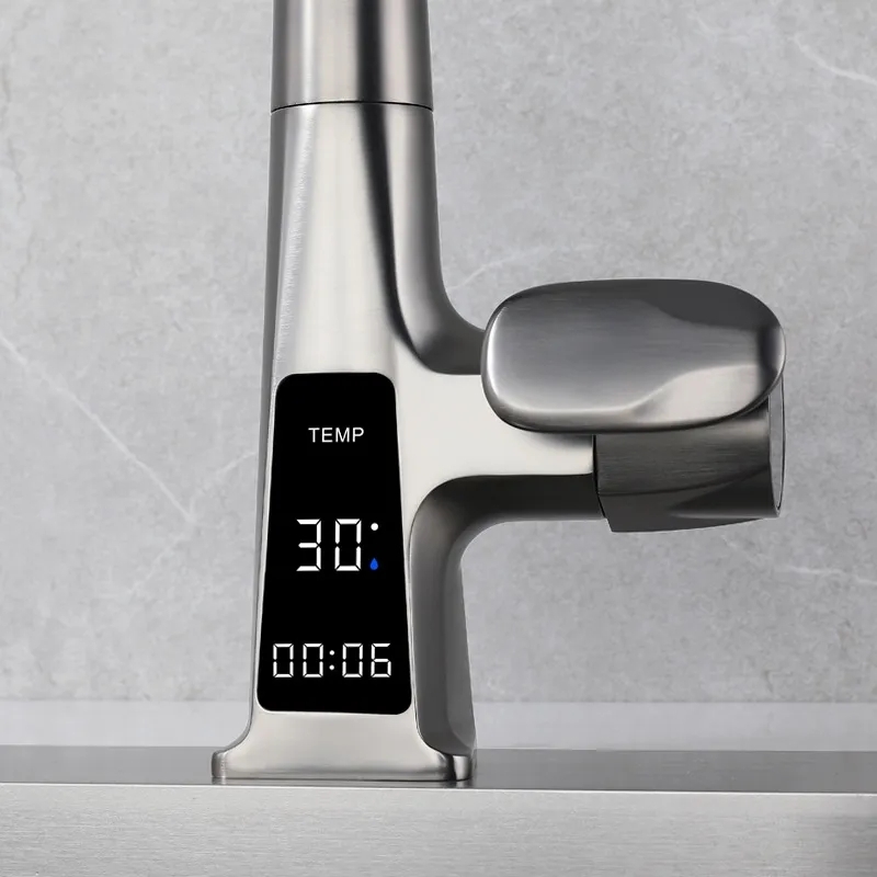 Дизайнерски Кухненски Смесител с термостат в цвят титан