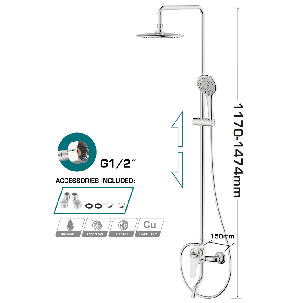 Душ системата TOTAL Industrial в хромирано изпълнение представлява съчетание между съвременен дизайн и индустриален стил, създавайки впечатляващо и функционално душ преживяване. Тази система включва горен душ, ръчен душ, държач и смесител, всички с хромирано покритие, което придава модерна естетика и блясък на компонентите. Горният душ осигурява равномерен и приятен поток на вода, който добавя комфорт и стил към вашето душово изживяване. Ръчният душ ви предоставя гъвкавост и свобода при избора на душовия режим, позволявайки персонализиране на преживяването. Смесителят с термостатен контрол гарантира точно и стабилно регулиране на температурата на водата, предоставяйки ви сигурност и комфорт по време на душ. Дизайнът на TOTAL Industrial в хромирано изпълнение се отличава с геометрични форми и индустриални акценти, които съчетават стил и функционалност. Тази система е изработена с внимание към детайлите и използва висококачествени материали, които гарантират дълготрайна и надеждна употреба. TOTAL Industrial в хромирано изпълнение е изборът за онези, които ценят смел и съвременен дизайн в банята си.