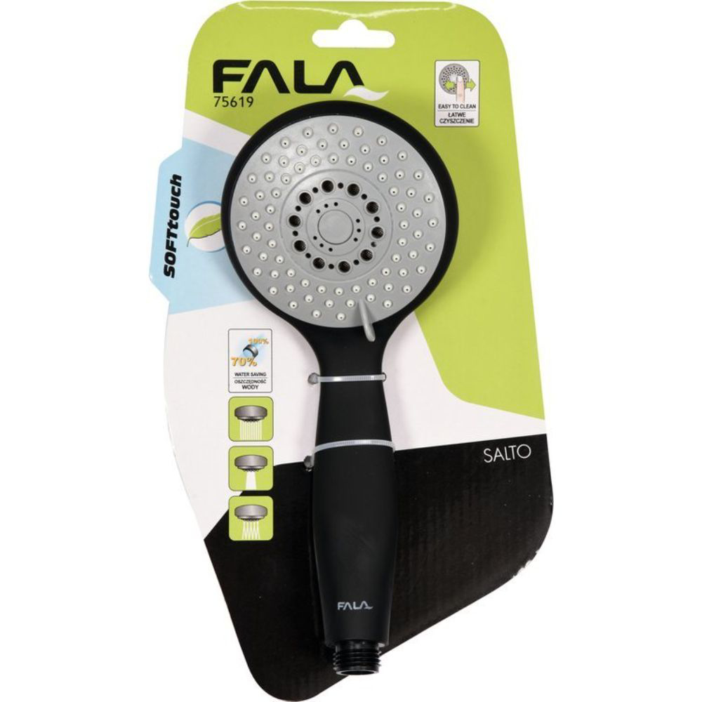 Душ слушалката FALA SALTO с 3 функции в стилното черно изпълнение е аксесоар, който комбинира естетика и функционалност в банята ви. Този модел предлага три различни душови функции, включително стандартен поток, масажиращ поток и други, които ви позволяват да преживявате душата си по начин FALA SALTO с 3 функции, който отговаря на вашите желания. в черно, добавя не само функционалност, но и стил във вашата баня, предоставя ви удоволствие и релаксация по време на душа.