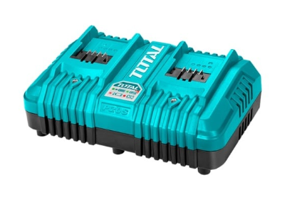 Бързо зарядно устройство за Li-Ion батерии TOTAL Industrial 20 V, позволяващо да зареждате 2 батерии едновременно - Fast intelligent charger.