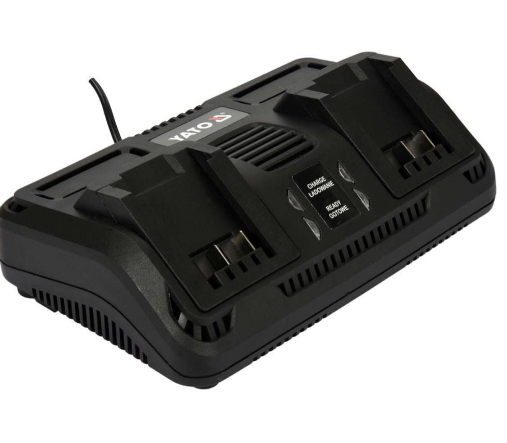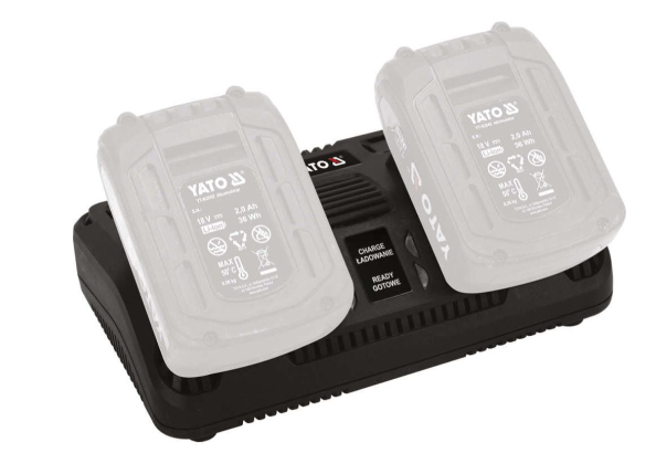 Зарядното устройство ви позволява да зареждате две батерии YATO 18 V наведнъж, спестявайки време и подобрявайки работата си.