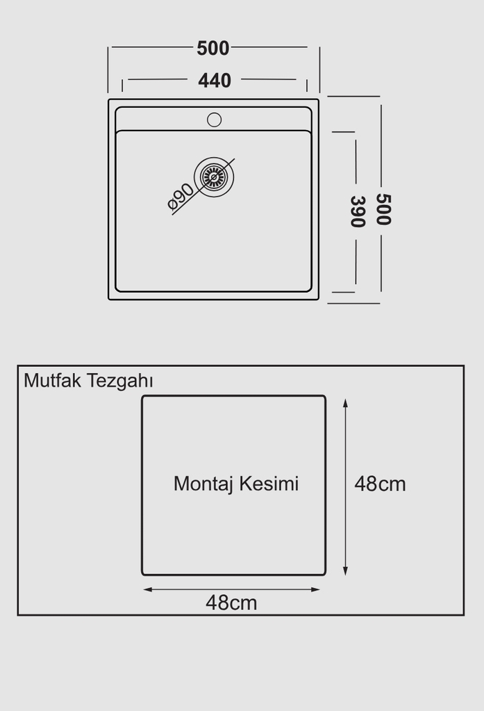 - Комплект :В цената на мивката са включени сифон с преливник Ф90 mm.