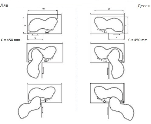 Изтеглящ бъбрек за глух шкаф ляв или десен
