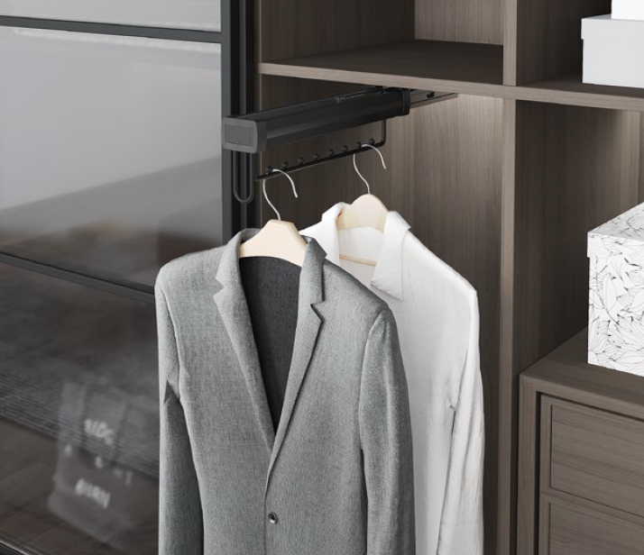 Със своя изключително издръжлив дизайн и качествени материали, изтеглящият лост е създаден да осигурява дълготрайна и надеждна употреба. Водачите Blum, използвани в механизма, осигуряват плавно и тихо движение, когато изтегляте или поставяте закачалките си. Това гарантира, че вашият гардероб остава безшумен и организиран.