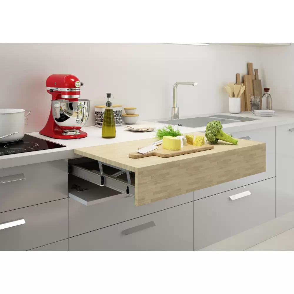 Изтеглящ механизъм за допълнителен плот, маса с изравняване, Opla Top иновацията за вашата кухня