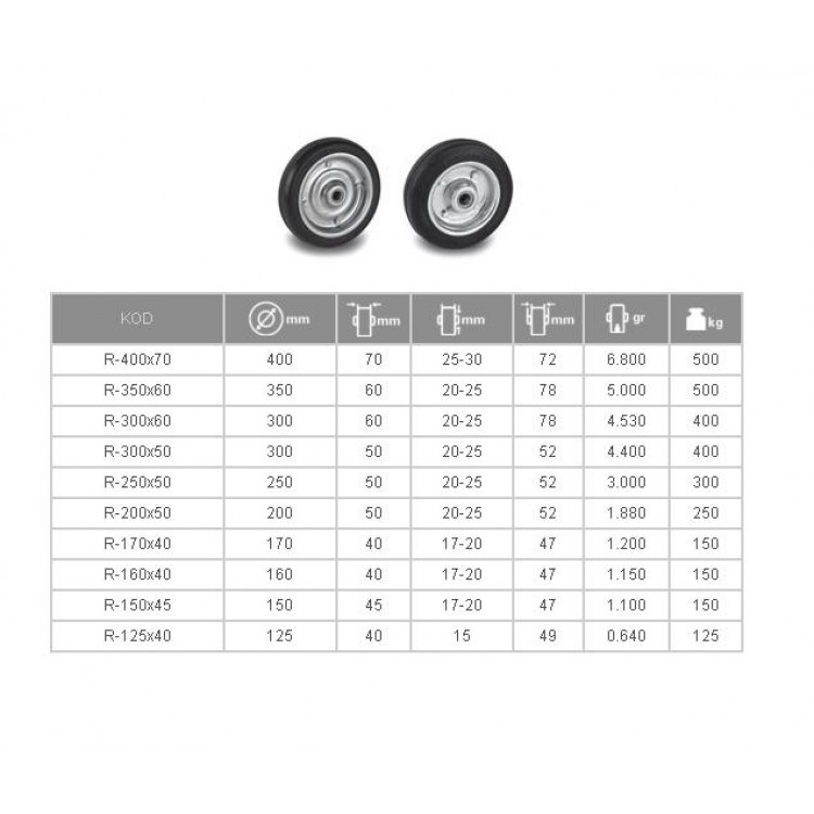 150 mm, 200 mm, 250 mm, 300 mm, 350 mm