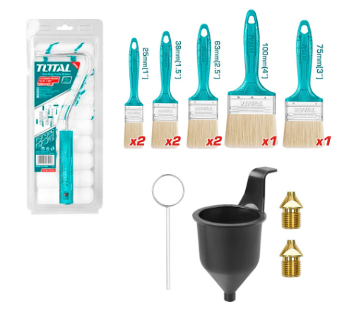 • 8 бр бояджийски четки: 2 х 25 мм, 2 х 38 мм, 2 х 63 мм, 1 х 100 мм, 1 х 75 мм