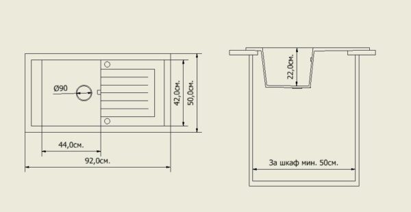 | ОТВОР за Смесител ▼ | Без Отвор, ДА с ДЕСЕН плот и отвор, ДА с ЛЯВ плот и отвор |