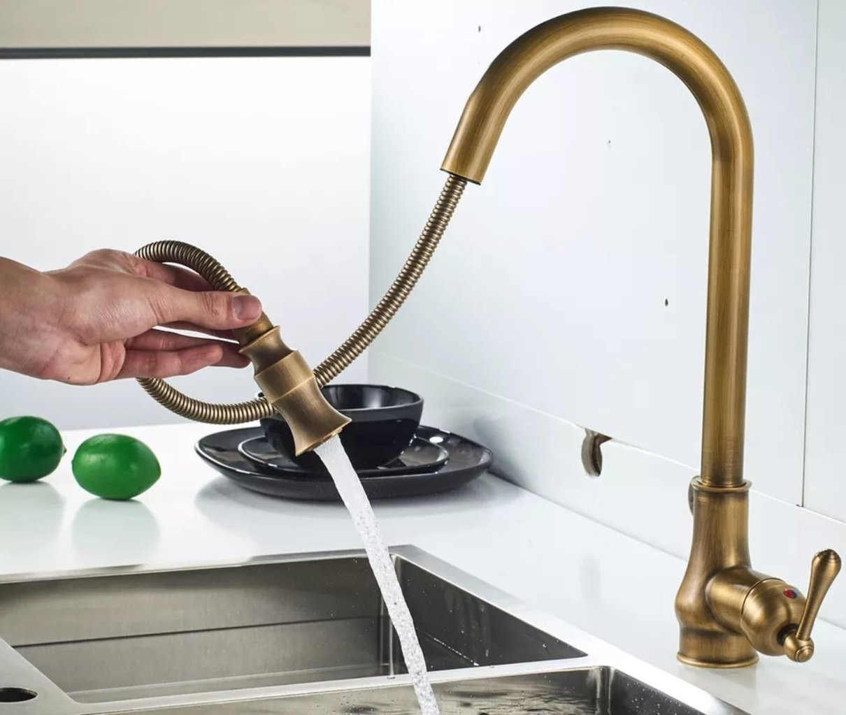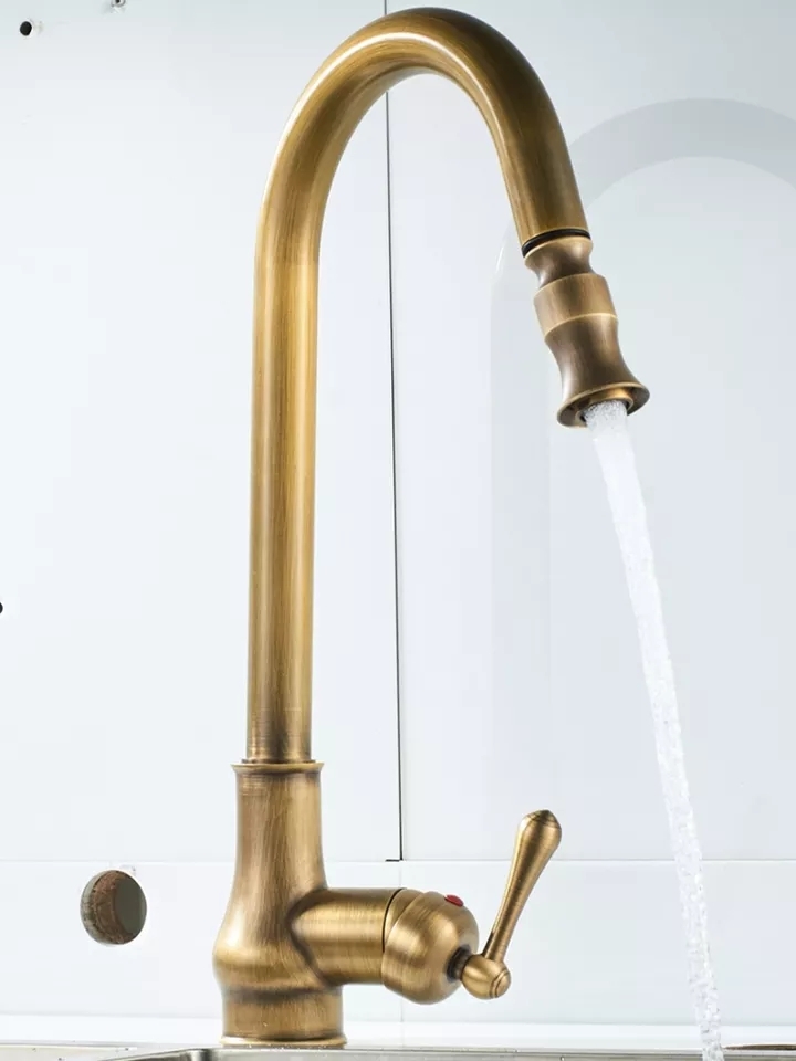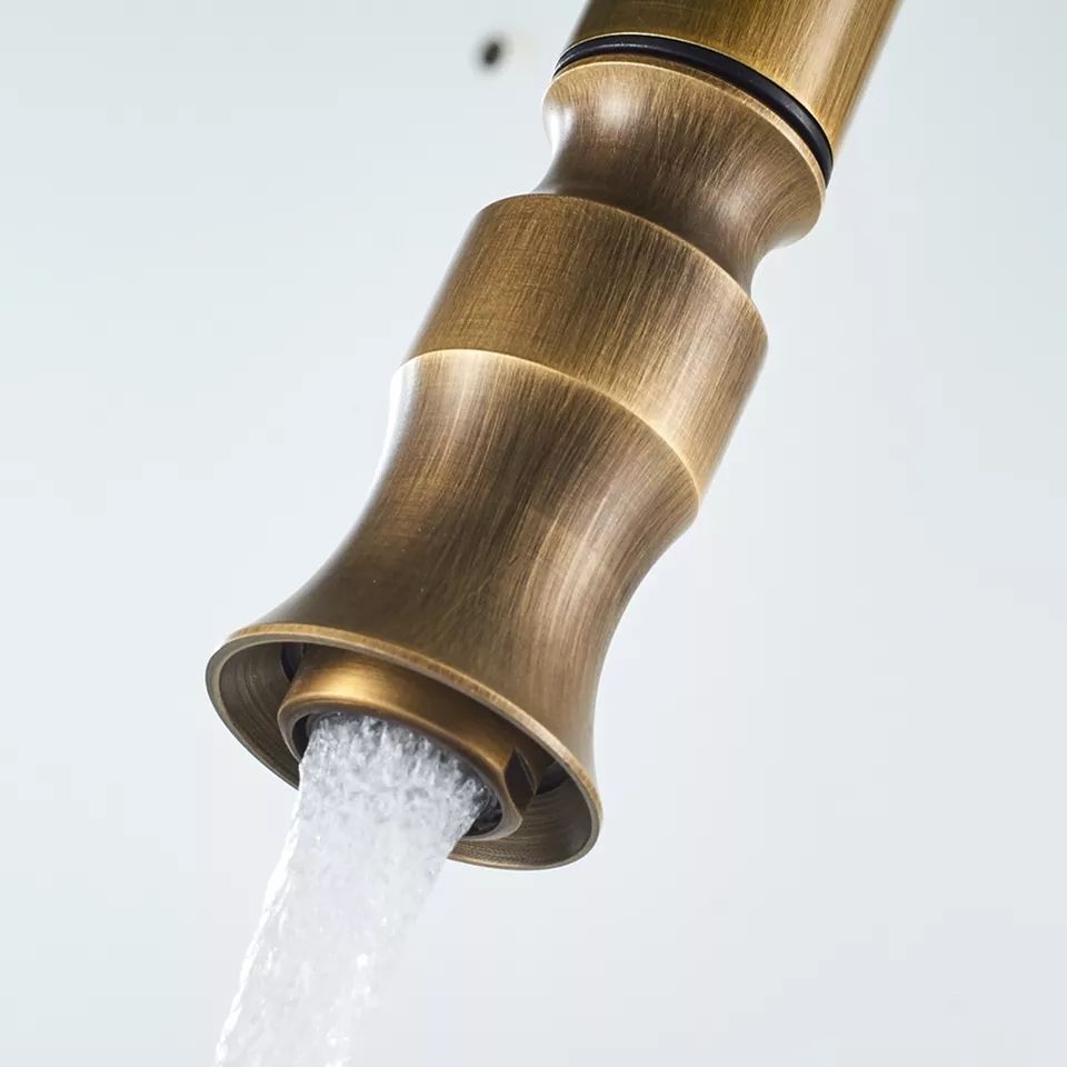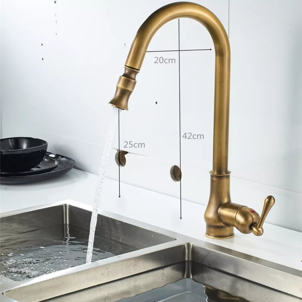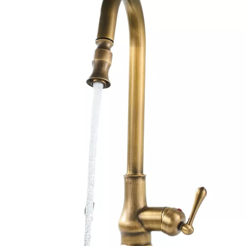 Кухненски Смесител изтеглящ baroco в застарено злато Антик вдъхновен от испански кралски дворец. Продукта може да се съчетае с мебелна дръжка за кухня застарено злато модел 10568