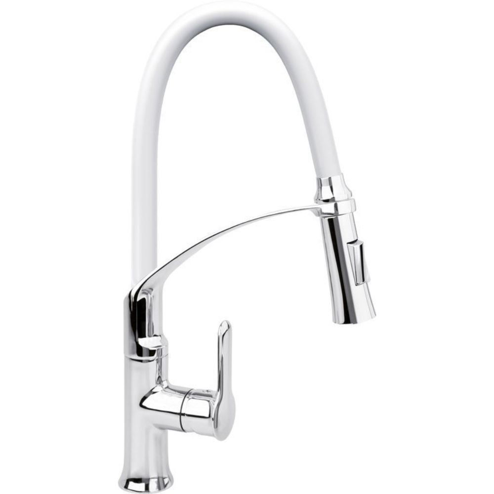 Практичен и естетически завършен смесител с гъвкав чучур. Прецизно регулирайте ъгъла, височината и обхвата на водната струя. Батерията е подходяща както за кухненски, така и за битови мивки.