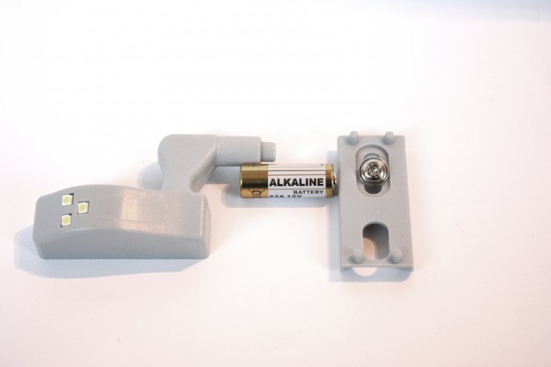 LED осветление за монтаж върху панта на батерии. LED осветлението е съвместимо с всички универвални панти, лампичката има конектор, с чиято помощ при отваряне на вратичката крушката светва, а при затваряне загасва.