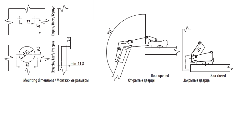 Мебелна панта на модел 165° ХАРМОНИКА