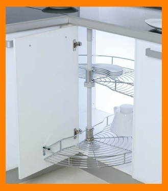 - Долните ъгли на коша излизат, когато вратата на модула е отворена, горната кошница излиза при поискване чрез завъртане на носещата тръба