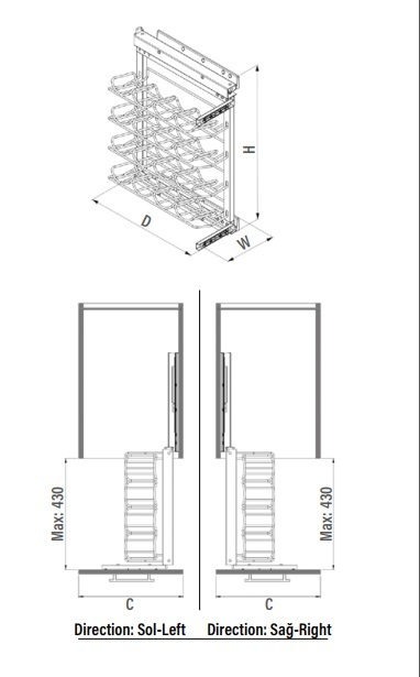 Механизъм за бутилки вино STARAX с водачи странично водене Blum инавация за вашата Кухня