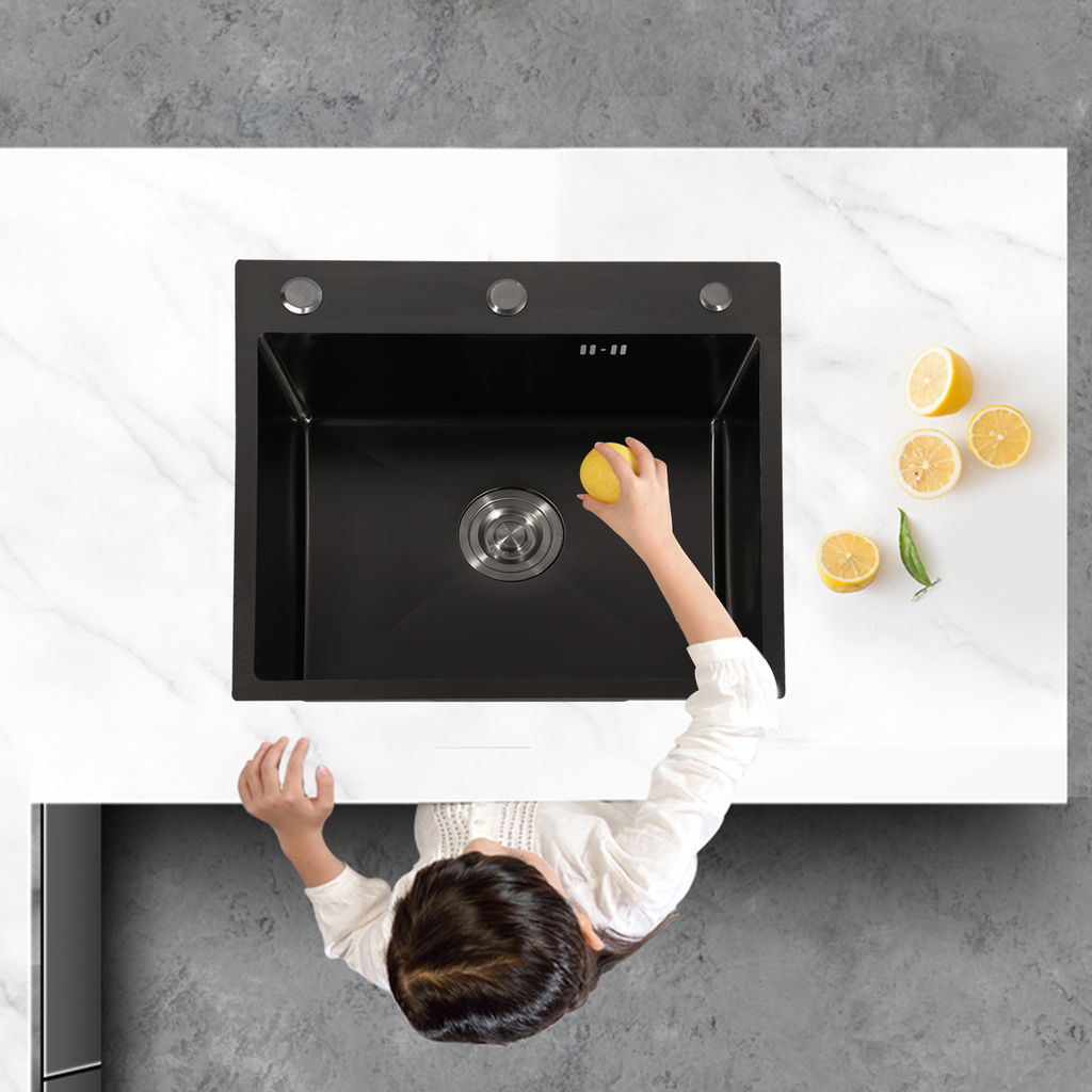Мивка от неръждаема стомана - Черна може да се съчетае с черени смесители и иноксови
