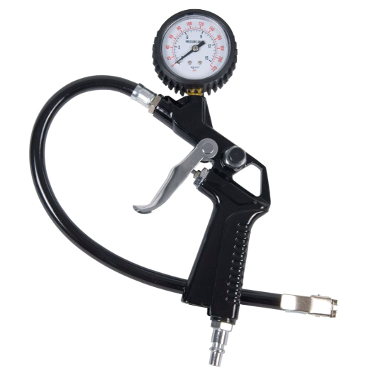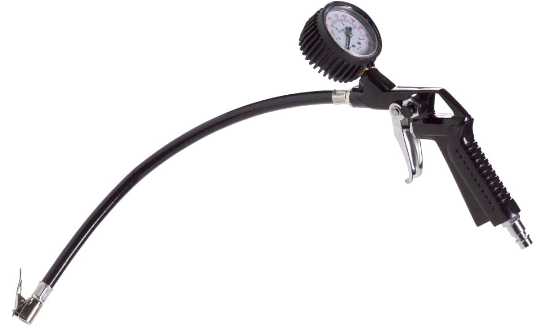 Професионален пистолет за въздух с манометър. Използването на адаптери (не са включени в комплекта) позволява напомпване на надуваеми лодки, дюшеци, топки и други.