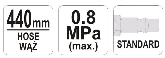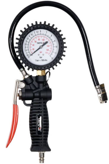 Професионален пистолет за въздух с манометър. Използването на адаптери, (не са включени в комплекта), позволява напомпване на надуваеми лодки, дюшеци, топки и други.