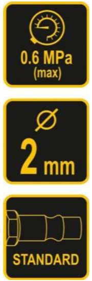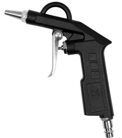 Универсален пистолет за въздух с къса дюза. Предназначен за издухване на нежелани замърсявания, прах, дървени стърготини и други фини материали.