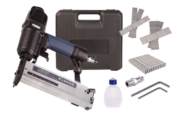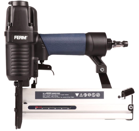 Комбиниран пневматичен такер за пирони и скоби. Задължителен инструмент в тапицерството за приковаване на дамаски. Подходящ за закрепване на противокомарни и други мрежи към дървени рамки, приковаване на гумени уплътнители към врати и прозорци и много други.