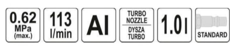 Пневматичен пистолет за пяна с резервоар за препарат позволява ефективно почистване на повърхността с генерираната активна пяна. Предназначен за почистване на каросерии, ремаркета, камиони, авточасти и други елементи, устойчиви на измиване с активна пяна. Превключвателят на клапана ви позволява да контролирате засмукването на течност от резервоара. TURBO дюза създава плътна и суха пяна, която остава по-дълго на почистваната повърхност.