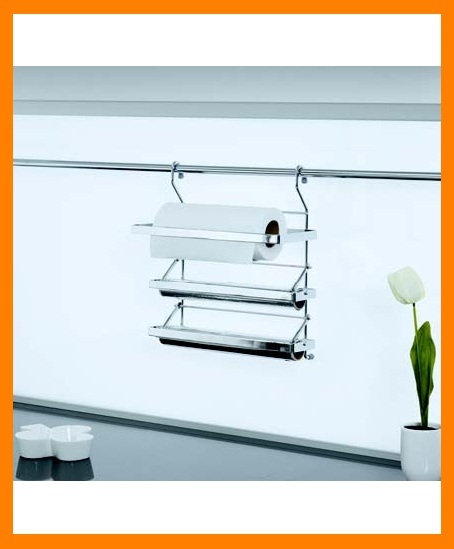 Хромирана поставка за домакинска хартия,стреч и фолио за закачване на кухненска тръба. За монтирането на аксесоара не са необходими допълнителни държачи или елементи.