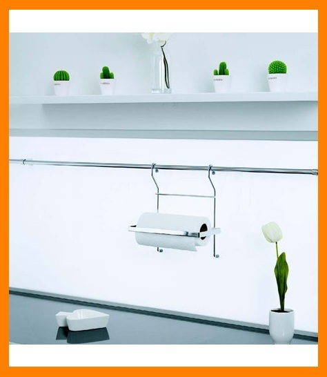Хромирана поставка за домакинска хартия за закачване на кухненска тръба. За монтирането на аксесоара не са необходими допълнителни държачи или елементи.