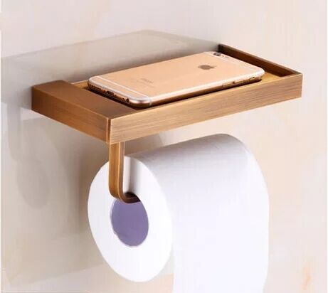Поставка за тоалетна хартия с етъжерка за телефон - Антик