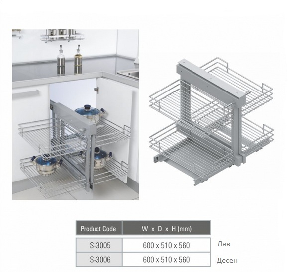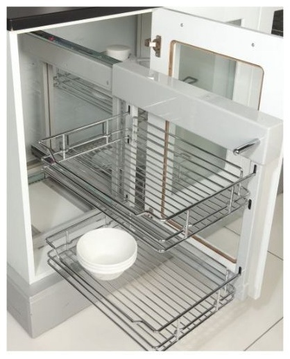 Механизмът на Starax за глух шкаф предлага на нашите клиенти удобство и функционалност съчетани с голяма товароносимост до 15кг. на всяка от двете кошници. А спомоща на телескопичните водачи сплавно прибиране затварянето става плавно, безпроблемно и безшумно.
