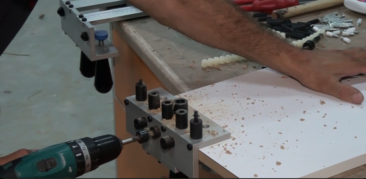 Шаблонът е приложим за плоскост с дебелина 16,18, и 25 мм. В цената на шаблона включва пълен набор от бургии и инструменти за пробиване на мебелни плоскости.