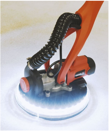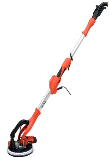 Машина тип "жираф" с LED осветление и вградена прахосмукачка, предназначена за шлайфане на гипсови мазилки, шпакловки и фуги на гипсокартон. Телескопичното рамо позволява да шлайфате стени и тавани до височина от 4 метра, без нужда от стълба.