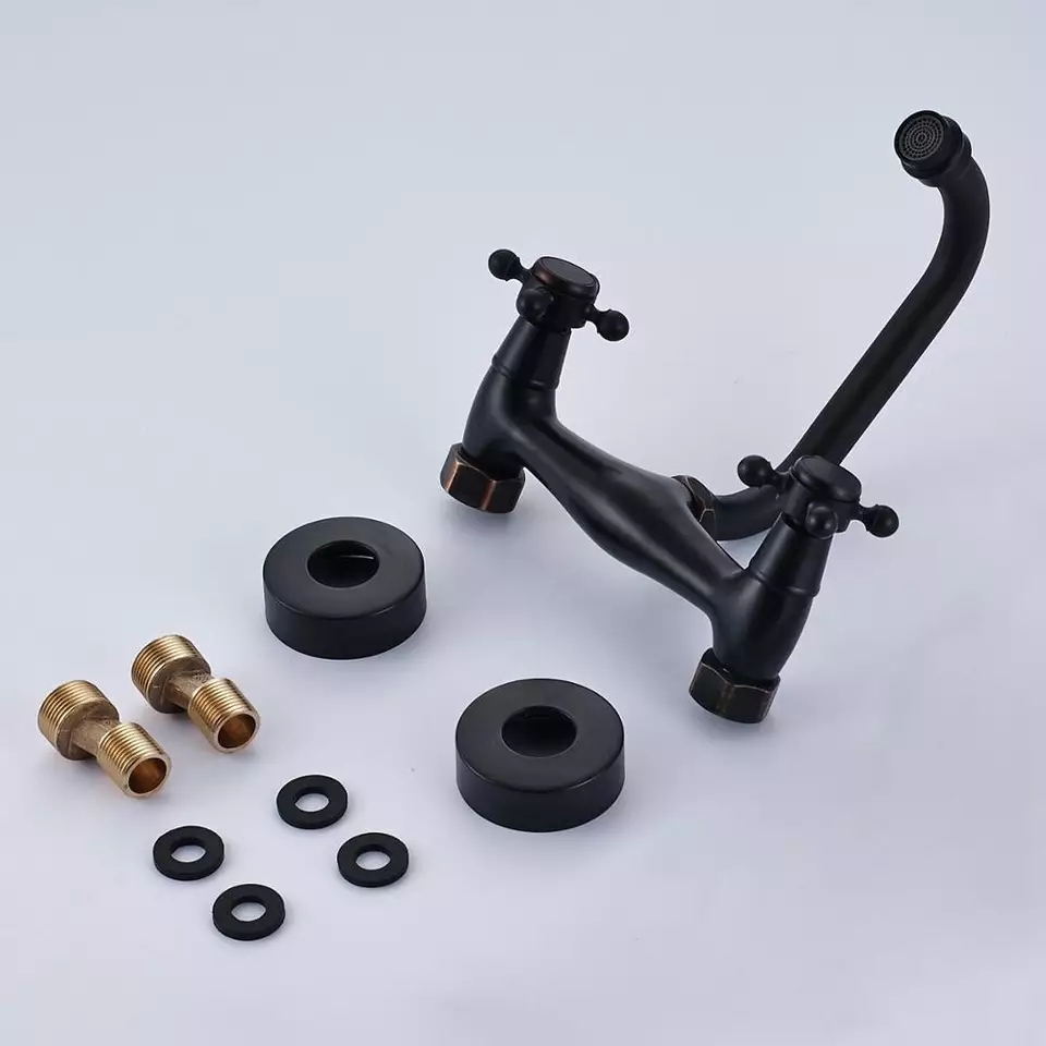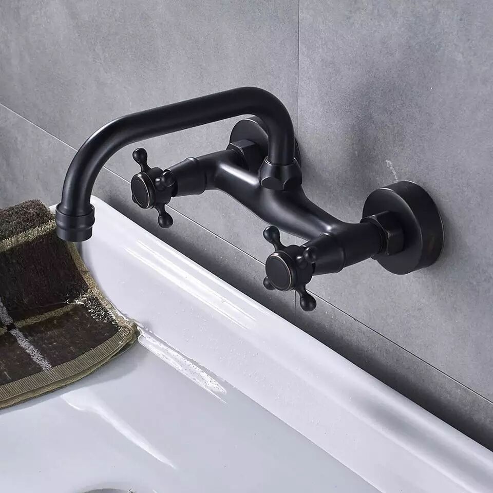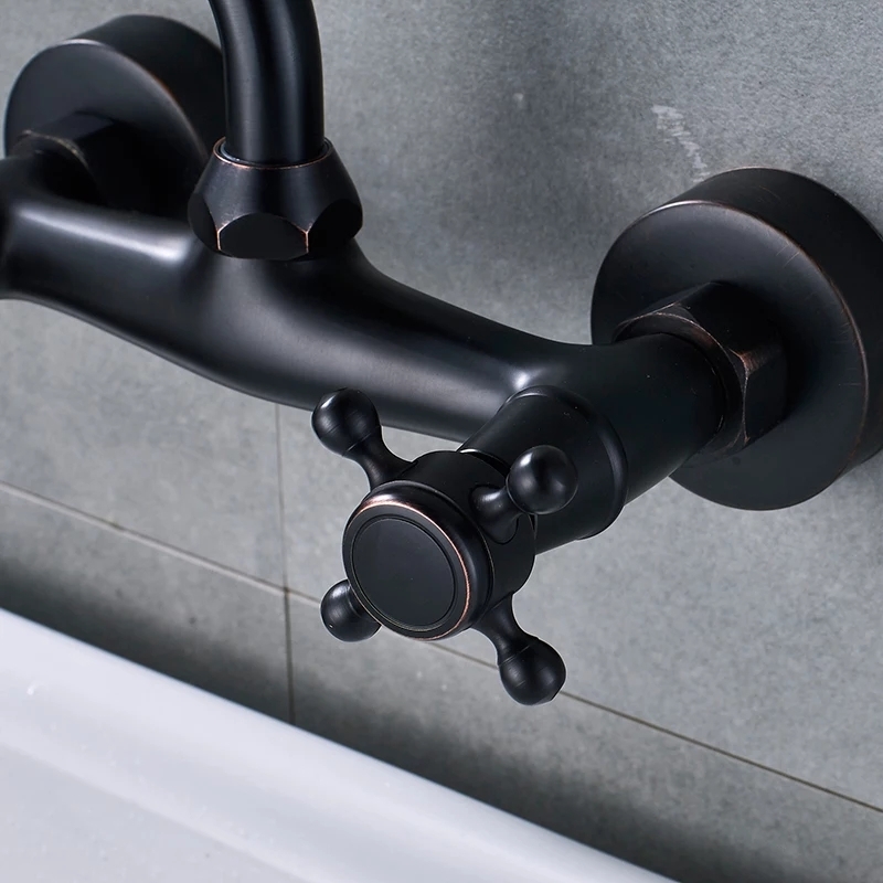 Смесителят за стена в черен мат застарен с медни оттенъци в Античен Стил вдъхновен от Френски Дворци.