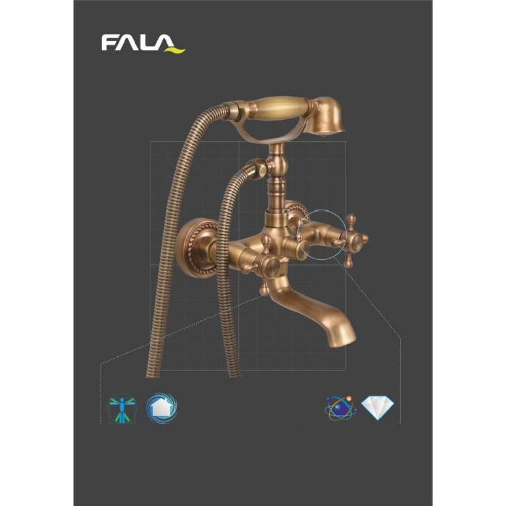 Смесителят за баня с душ слушалка FALA RETRO BRONZE 1 е изключително стилен и функционален аксесоар, който съчетава винтидж дизайн и съвременна функционалност. Този модел представлява идеалното решение за тези, ценят елегантността на минималната епоха, но същевременно желаят всяко удобство. Смесителят е изработен Изработен от висококачествени материали, смесителят FALA RETRO BRONZE 1 е издръжлив и надежден, осигурява гладко и гладко. прецизно регулиране на температурата и потока на водата. Този смесител съчетава елегантен визуален стил с комфорт и функционалност, предоставя ви уникален душ опит във вашата баня.