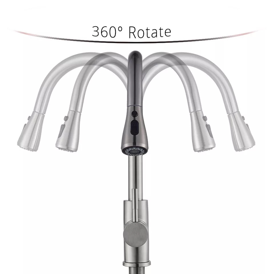 Смесител за кухня с изтегляща се лебедка в цвят Инокс, модерното и практично решение за всеки дом. Смесителят може да бъде съчетан кухненски дозатор за вграждане в цвят Инокс, дръжки със съшият цвят и/или кухненски уреди за вграждане в цвят Инокс.
