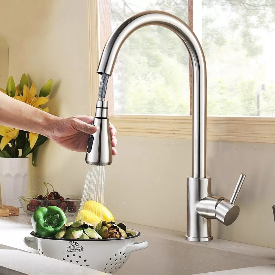 Смесител за Кухня с Изтеглящ Душ Инокс може да го съчетаете с дозатор за вграждане в мивка в цвят инокс