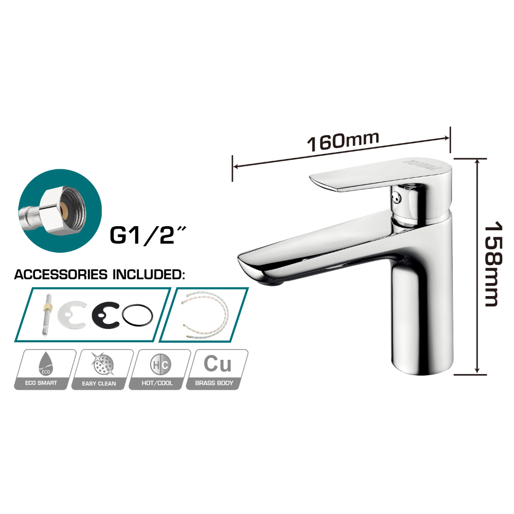 Смесител за мивка TOTAL Industrial в хромирано изпълнение с височина 158 мм - израз на съвременен стил и индустриален дизайн. Този смесител не предоставя само лесен и прецизен контрол над потока на водата и температурата, но и предлага елегантен и съвременен външен вид. Височината от 158 мм, този смесител е практичен и функционален, подходящ както за бани, така и за кухни Хромираната повърхност придава блясък и луксозен вид на смесителя, като същевременно го прави лесен за почистване и поддръжка. предоставяйки ви стил и удобство в едно.