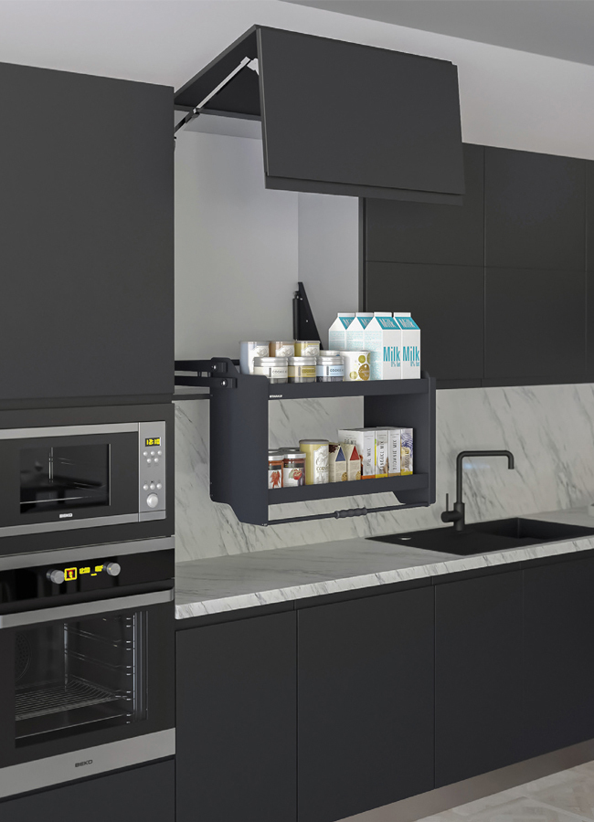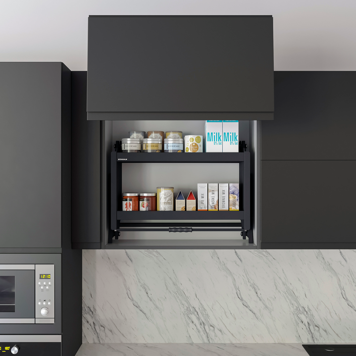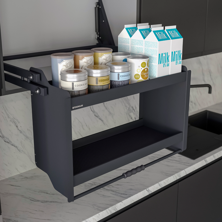 Изследвайте нашата сваляща етажерка за продукти и свалящ рафт STARAX в цвят антрацит, която предлага практично и иновативно решение за оптимизиране на кухненското пространство. Този уникален продукт е проектиран да улесни достъпа до кухненски прибори и продукти, идеален за хора с ограничена подвижност или за максимално използване на труднодостъпни места. Стилен и функционален, свалящият се рафт STARAX добавя модерен акцент към всяка кухня, като същевременно осигурява изключителна удобство и ефективност